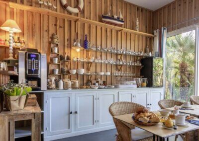 L’hôtel Le Grain de Sable c’est 15 chambres à thème et un service des plus attentionné. Le petit-déjeuner est servi dans une grande et belle salle à la décoration typique du Bassin d’Arcachon. Un parc arboré est également à votre disposition pour vos moments de détente à l’arrière de l’établissement.